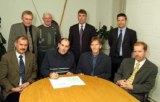 | Pictured at the signing of the contract for the Re-roofing and Renovation of Keelogues Church, in the offices Taylor Architects, Breaffy Rd, Castlebar, included in photo front from left: Noel Burke, chairman Keelogues Project Committee; Seamus Durkan, Main Contractor; Fr Peter Waldron, PP Keelogues; and Eamon McCarney, Taylor Architects; at back from left; Tom Basquille, Peter McDonnell and Martin McHugh Committee; and Gerry Tierney, Quantity Surveyor. Photo: Michael Donnelly | |||||